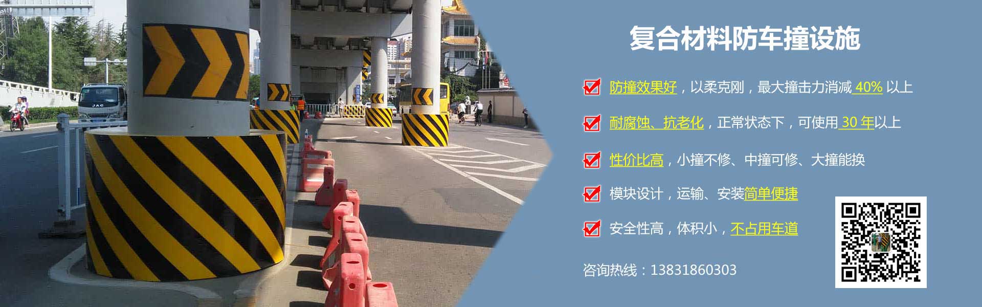 高速公路橋墩防撞設施,又稱為高速公路橋墩附著式柔性防車撞裝置,是一種附著到高速公路中間或兩側橋墩四周的柔性復合材料橋梁橋墩防撞設施。這種防撞設施為復合材料單元模塊組裝式,根據車輛通行情況(車輛等級、限速...
